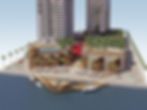 Commanding the banks of the Mae Nam Chao Phraya, this proposal offered to invigorate the entrance to a pair of residential towers, transforming their bare ground plane and car park podiums into a public piazza and exclusive residential roof gardens, complete with spas, gyms and banqueting facilities. The rippling green steps of the roof gardens reference the region’s terraced rice paddies, with a series of elliptical pools cascading down towards a circular hot tub, surrounded by teak sun loungers. The interlocking patterns project down to the piazza’s paving below, reaching out into the river to form a dynamic diamond jetty where water taxis may moor. A long corridor of jostling parasols creates a dramatic portal to the second tower that opens out into a landscaped water garden populated by the dining pavilions of three podium restaurants.